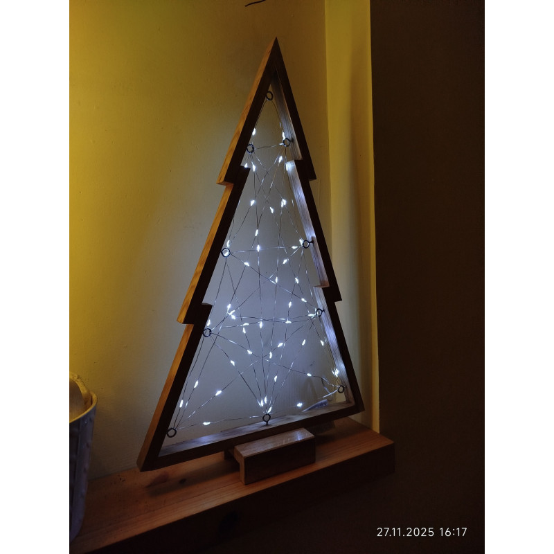 Stromek s osvětlením. Dřevo masiv dub. Povrchové úprava polomat. Rozměr cca 550x330mm. LED osvětlení "ledově bílá". Baterie AA - 3x1,5V